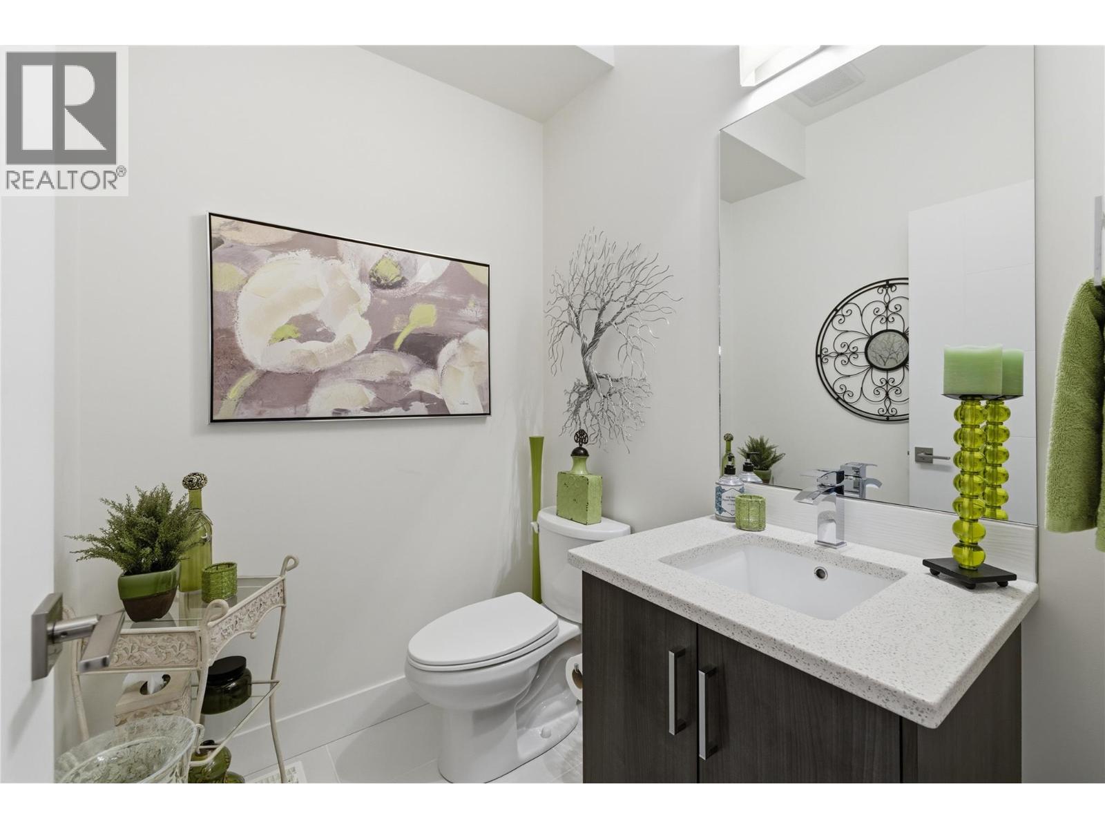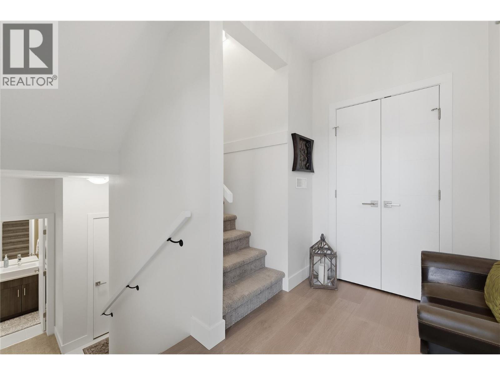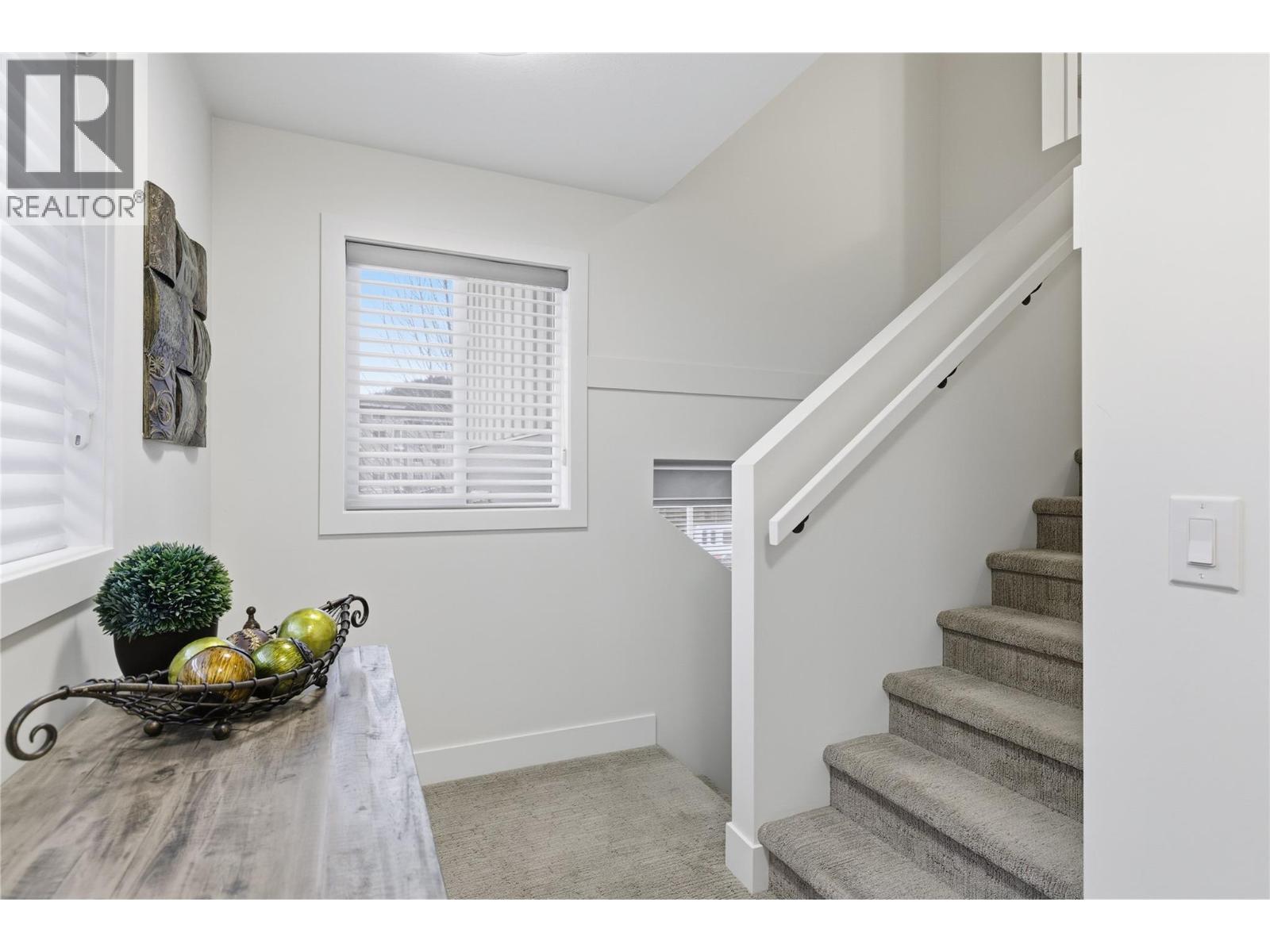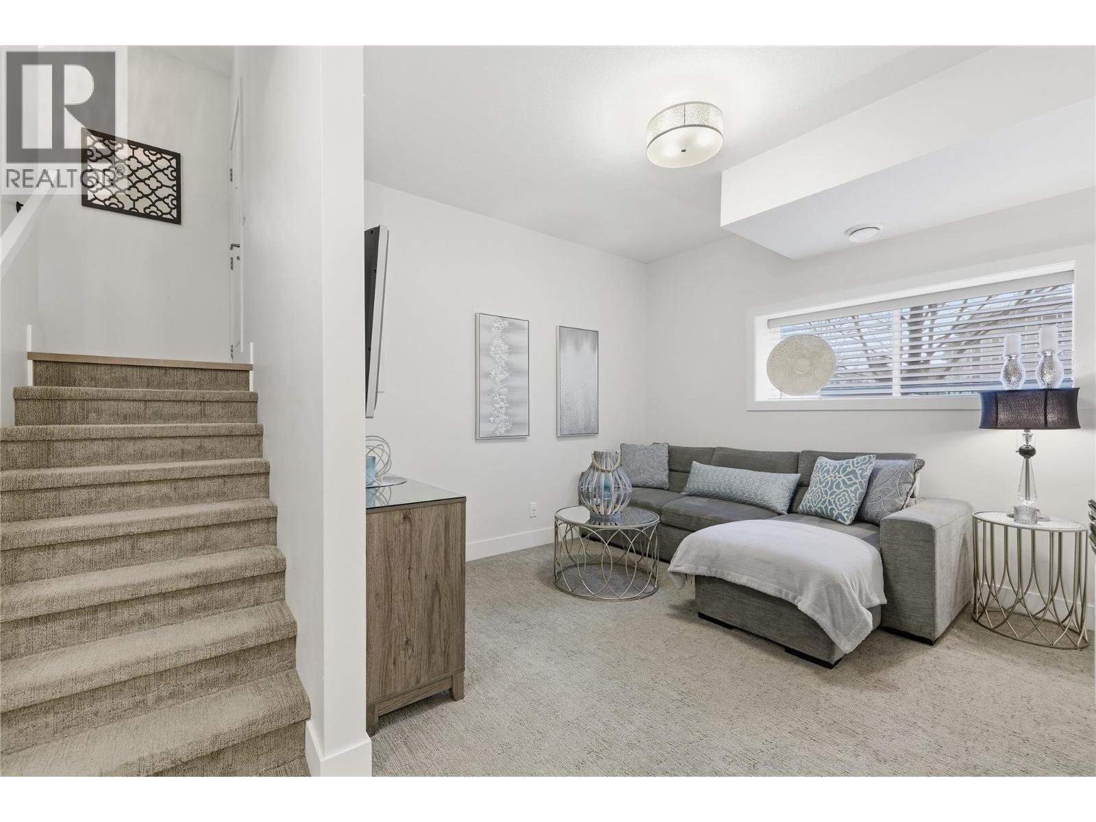 Bright and beautiful corner unit in the highly sought-after Grove development, offering modern lifestyle living in the heart of Glenmore. This like-new 3-bedroom, 4-bath townhome with a finished lower-level flex space is one of the largest units in the complex, blending comfort and style while being flooded with natural light throughout. High-end finishes include wide-plank engineered hardwood floors, high ceilings, and European-tiled bathrooms with luxurious fixtures. The open-concept main level showcases a chef’s kitchen with soft-close cabinetry, oversized island, quartz countertops, stainless steel appliances, and an electric fireplace in the living room. Two distinct outdoor living spaces enhance the home’s appeal: a covered deck off the kitchen—perfect for morning coffee—and a walk-up front patio ideal for entertaining. A heated double car garage and low strata fees add to the convenience. The finished lower-level flex space includes a full 4-piece bathroom and large walk-in closet, offering versatile options for guests, family, or work-from-home needs. Centrally located just steps to shopping, restaurants, Brandt’s Creek Linear Park, hiking trails, and the new Glenmore Recreation Park with skateboard park, pickleball courts, sports fields, and more. Close to Dr. Knox Middle School and three elementary schools. Don’t miss this opportunity for high-end, convenient Okanagan lifestyle living for the whole family. (id:4069)